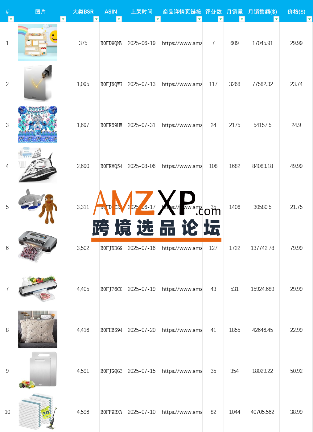 基米哥 类目:Home & Kitchen - 家居与厨房用品 客单:20美金以上 发货方式:FBA 数据概况:总共210条链接,都是最近90天上架评价相对较少做起来的链接。 更新时间:2025.8.27 需要完整数据,请点此下载: 此内容需要 登录 并刷新后可见 表格图