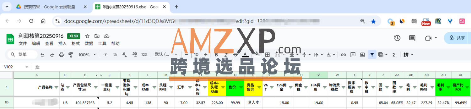 计算利润和拆解成本费用,可以套用表格自动计算,也可以借助插件计算。下边以美国站举例计算(美国站利润核算是最简单的,如果是欧洲站还得扣除VAT税费、佣金税、物流费税款、数字服务费、数字税等成本)。现在有第三方插件计算了,为什么还要自己用表格计算呢?因为自己套用表格更加精准,也方便将来自己灵活调价,需要表格可以 @基米哥
