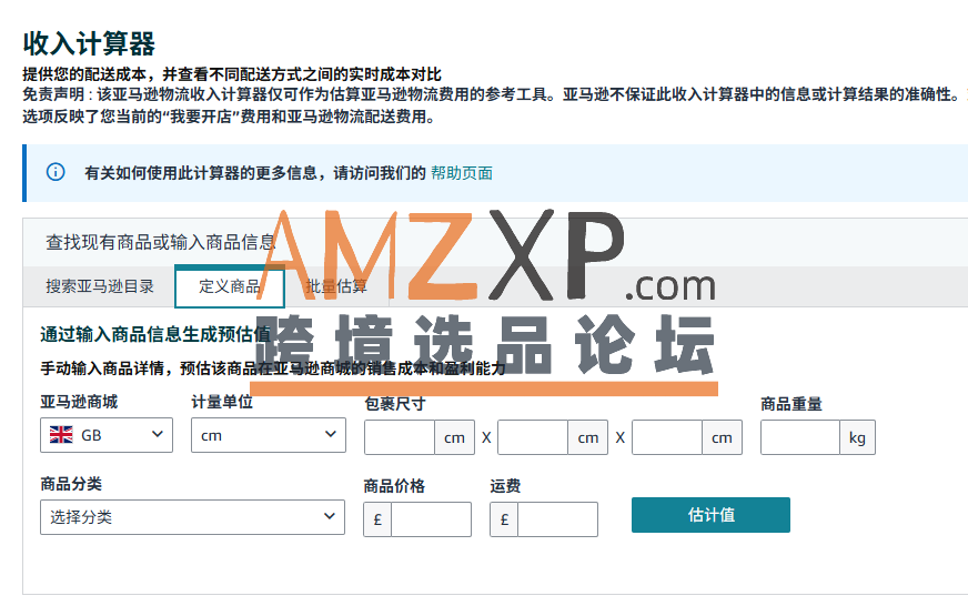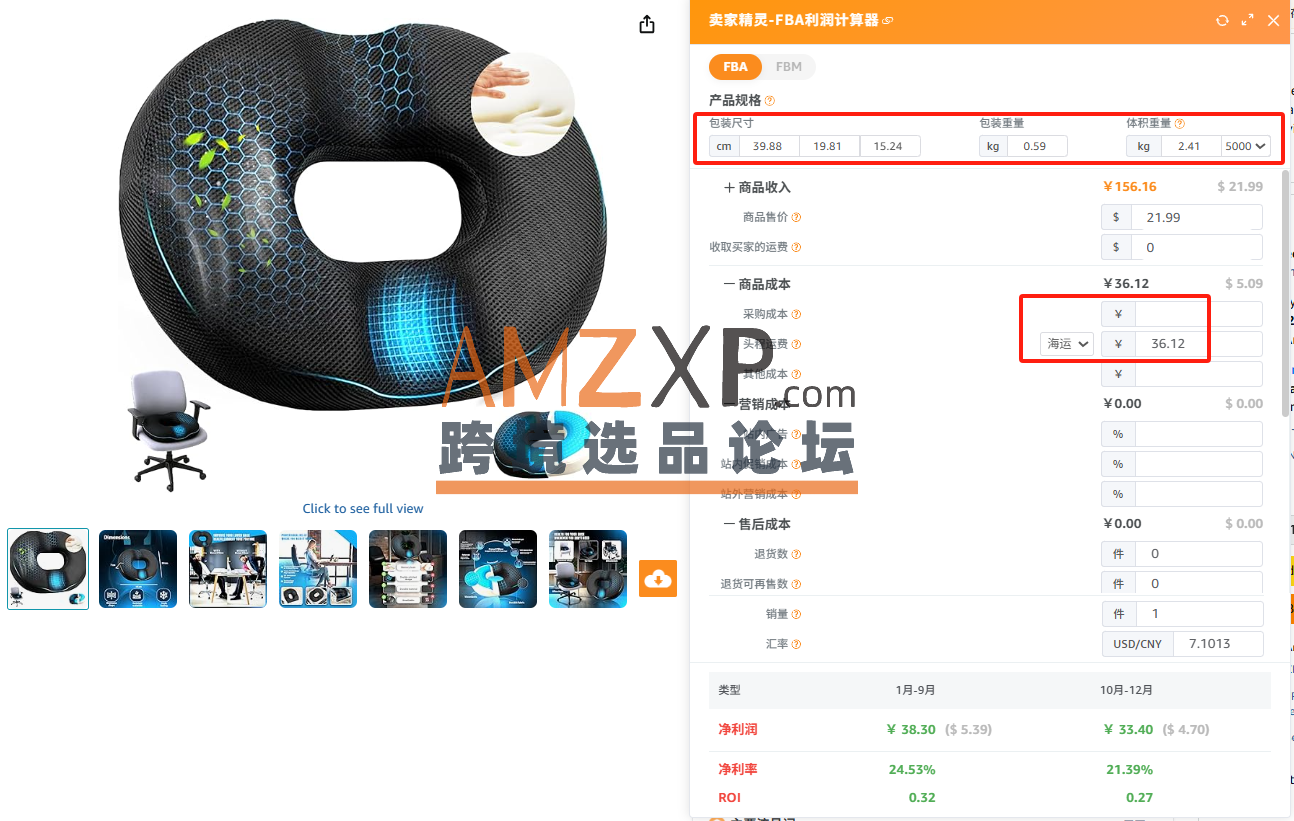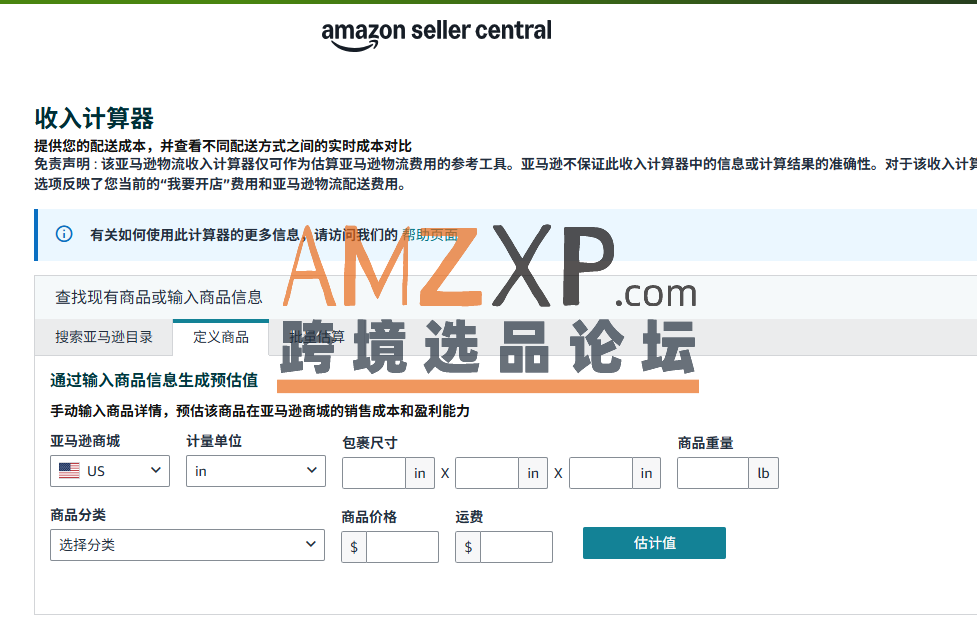 也可以直接用亚马逊官方的收入计算器,输入你的产品包装后的尺寸和重量、所在类目,计算尾程费用(本例举例的坐垫展开是扁平的,其实包装后是压缩卷在一起的,尺寸会更小一点。卖家较劲脑汁压缩产品尺寸和体积,就是为了节省尾程费):
