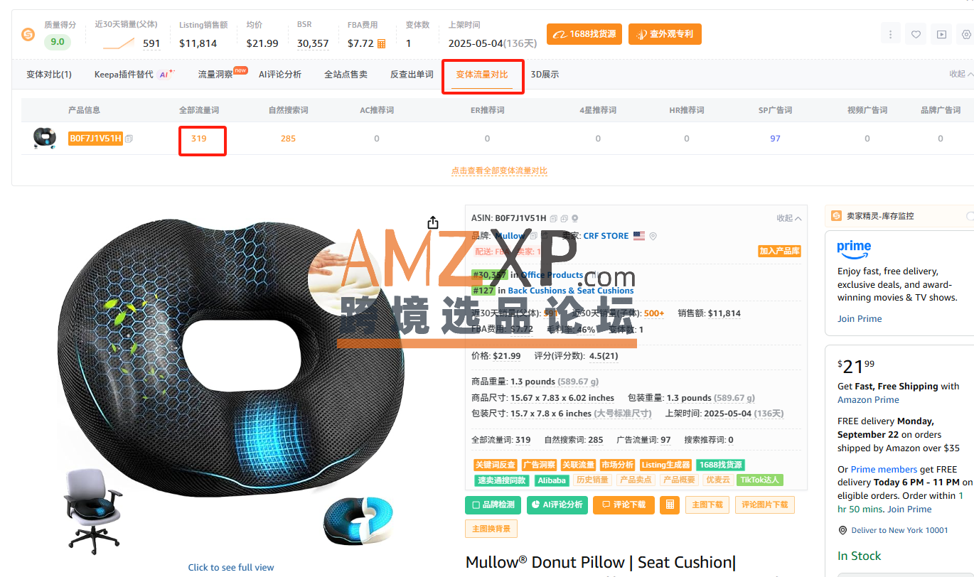 按照流量占比排序,可以看到donut pillow是他的主要流量来源词,每个主要的词其实都要看。